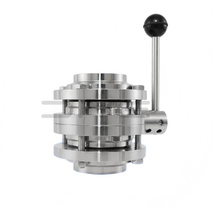 Санитарлық 3 бөлікті көбелек клапан жоғары дәлдіктегі CNC өңдеу технологиясын қолданады, жоғары сапалы SUS304 (1,4301) немесе SUS316L (1,4404) баспайтын болатты пайдаланады, өңдеу рұқсаттары ±0,01 мм шегінде бақыланады. Ішкі және сыртқы беттер айнадай жылтыратылған, ішкі қабырғаның кедір-бұдырлығы Ra≤0,4μm (қажет болған жағдайда дәлдікті арттыруға болады), санитарлық өлі бұрыштарды жояды. Ол GMP және EHEDG стандарттарына сәйкес келеді және CIP онлайн тазалауды және SIP жоғары температуралы бумен зарарсыздандыруды қолдайды.